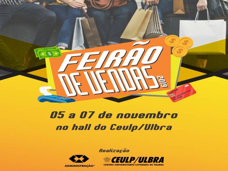 O curso de Administração do Centro Universitário Luterano de Palmas - Ceulp/Ulbra, realiza entre os dias 05 e 07 de novembro a 9ª edição do Feirão de Vendas. Com o objetivo de oportunizar aos acadêmicos de Administração o planejamento, organização, liderança e controle de um evento de promoção de vendas, o Feirão promoverá a exposição de produtos e serviços de empresas e microempreendedores de Palmas.