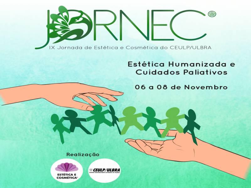 Acontece entre os dias 6 e 8 de novembro, a 9° edição da JORNEC, a Jornada de Estética e Cosmética do Centro Universitário Luterano de Palmas. Palestras, minicursos, apresentação de resultados de pesquisa e ações sociais, irão compor a programação do evento, que vai desenvolver um tema inovador: "Estética humanizada e cuidados paliativos".